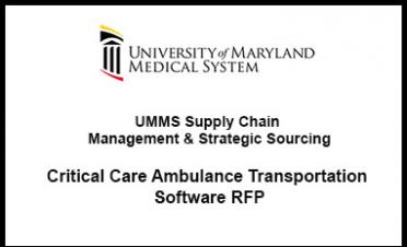 The University of Maryland Medical System (“UMMS”), and/or its affiliates (collectively referred to herein as "UMMS"), invites you to submit a Proposal for Critical Care Ambulance Transportation Software RFP in accordance with this Request for Proposal (RFP) dated, March 23, 2026, including attachments, incorporated herein by reference. Please see the Microsoft Excel Workbook with instructions once you click the link UMMS Open Requests for Proposal (RFPs) | University of Maryland Medical System.
