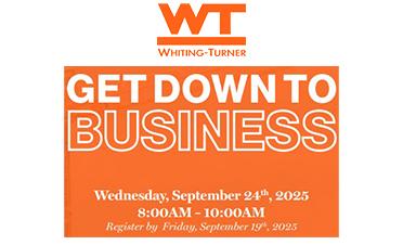 Whiting-Turner is pleased to invite you to our next Get Down to Business Event. Please join us for refreshments, networking, and to learn about upcoming opportunities.